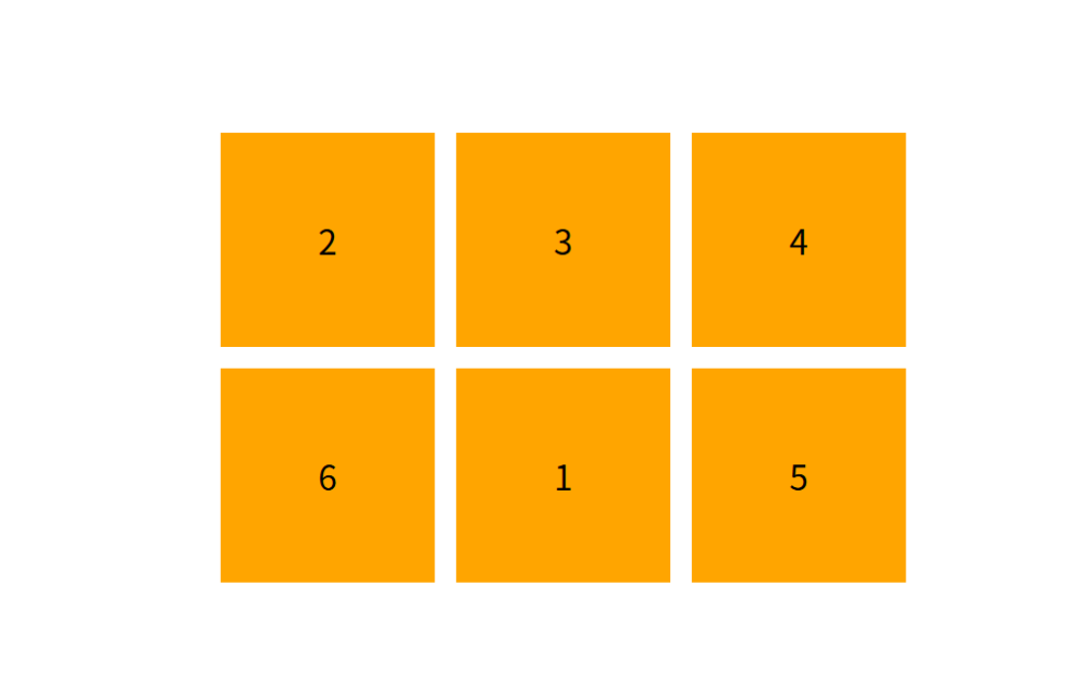 reading-flow: grid-order;を指定するとorder順になるので、2→3→4→6→1→5になります。